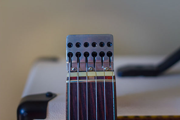 The Glutton Ichibod model was inspired by classic Gibson and Steinberger designs. The idea: to create a premium headless guitar, lightweight, semi-hollow with acoustic properties and a 24.75 scale length. This achievement makes Ichibod unique among guitar designs.