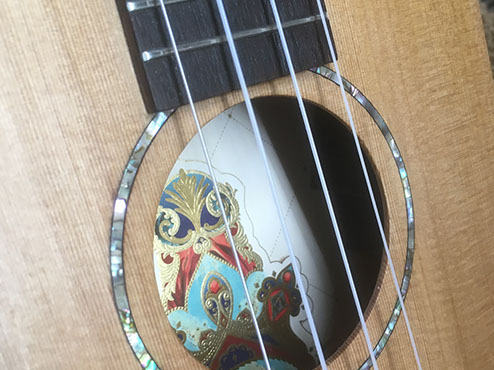 wood adornments. Look through the sound hole to see the cool stuff on the inside