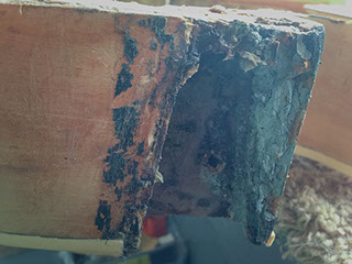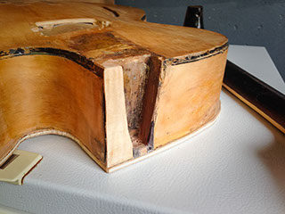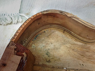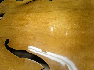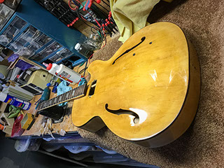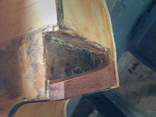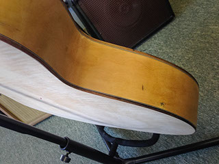 Automotive bondo and a construction plywood back someone used to "fix" a 1950 era Epiphone Sheraton