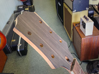 New back glued on. Was eventually bound with rosewood and the neck successfully re-attached.