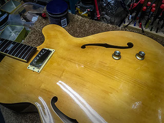 Epiphone with nitro re-finish. Polished and ready for re-assembly.